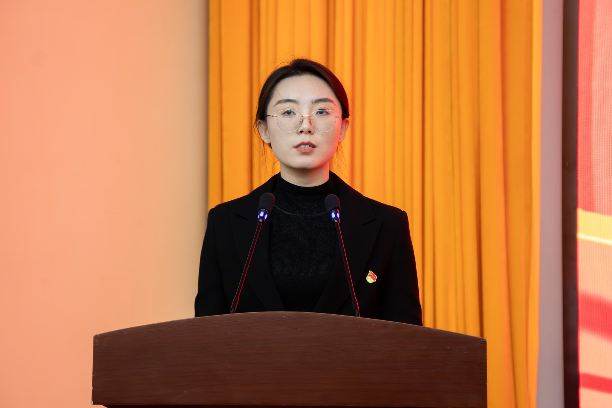 辛于雯致闭幕词,希望新一届学生会能够传承优良传统,牢牢把握青年工作方向,团结带领广大同学坚定理想信念、锤炼过硬本领、勇于担当作为。并勉励全院青年学生要牢记使命、团结奋进,以昂扬姿态积极投身学校发展实践,为中华民族的伟大复兴书写绚丽的篇章!