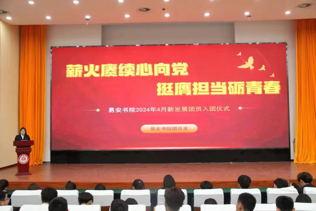 为深入学习宣传贯彻习近平总书记关于青年工作重要思想,进一步加强团员队伍建设,5月8日,易安书院在图书馆行政楼西报告厅举行“薪火赓续心向党,挺膺担当砺青春”2024年4月新发展团员入团仪式。易安书院团总支书记孙梅玲老师、易安书院团总支2024年4月新发展团员、优秀团员代表等170余人参与本次仪式。