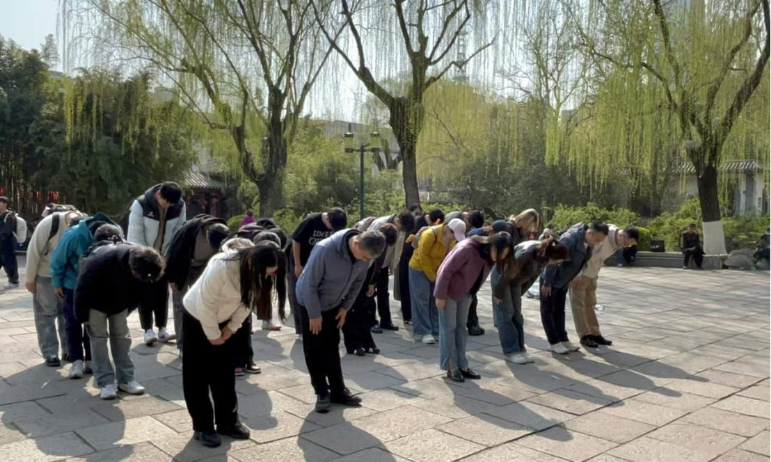 活动现场庄严肃穆,松柏苍翠。师生整齐列队,在雕像前肃立默哀、鞠躬致礼,深切追思王尽美、邓恩铭等革命先辈为民族解放与人民幸福所做出的卓越贡献。默哀鞠躬仪式后,师生静默瞻仰雕像,并在现场开展感悟交流。同学们一致表示,通过此次现场教育,革命先辈坚定的理想信念、无私的奉献精神与艰苦卓绝的斗争历程令人深受触动,进一步强化了继承光荣传统、赓续红色血脉的思想自觉与行动自觉。