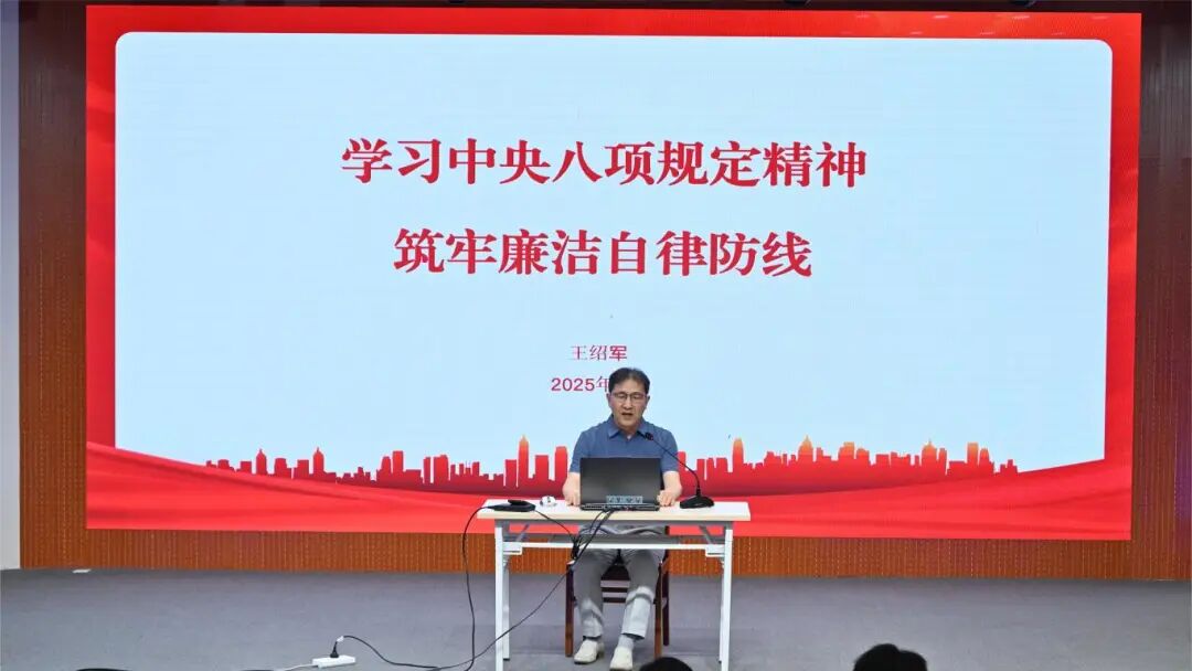 王绍军围绕《学习中央八项规定精神,筑牢廉洁自律防线》这一主题展开讲解,他强调,中央八项规定精神是师生践行廉洁自律的行动纲领。学习中央八项规定精神有助于师生筑牢思想道德防线,摒弃浮躁之气与奢靡之风,培养踏实肯干、廉洁自律的优良品质。在校园中,同学们应专注学业,摒弃虚荣攀比,以踏实的态度对待每一门课程,还要坚决杜绝形式主义,真心实意地为同学服务。在日常生活里,要践行中央八项规定精神,将廉洁自律内化于心、外化于行,在一点一滴中培养良好的品德与习惯。