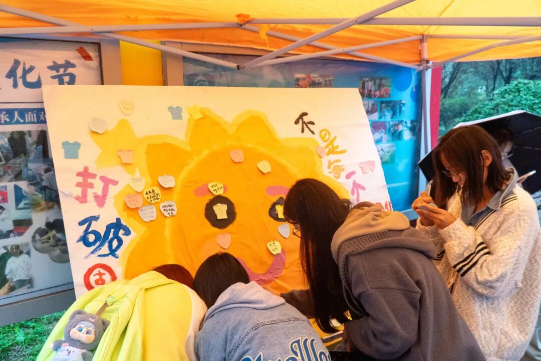 为更好响应本年度世界精神卫生日"人人享有心理健康服务"主题的号召,南山书院在9号宿舍楼前成功举办"解心之结,绘心之悦"心理破壁活动。