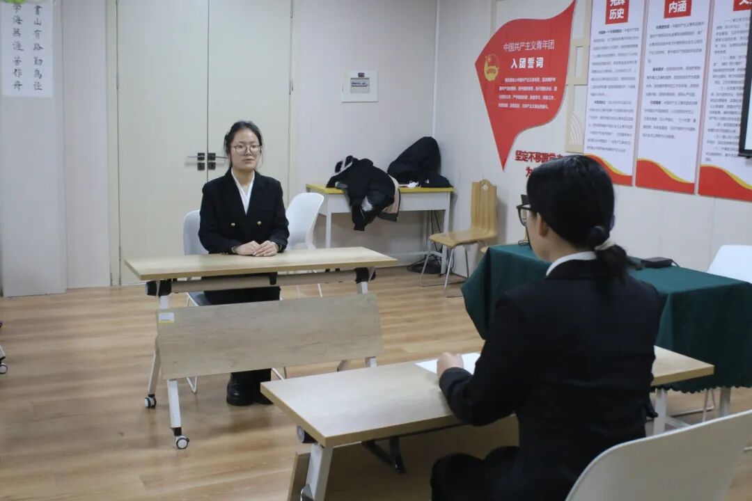 在实践演示环节,社团学生代表现场演示了“无领导小组讨论”、“一对一面试应答体态”等场景,并带领大家进行实操。现场气氛活跃,充分展现了对职场礼仪的学习热情。