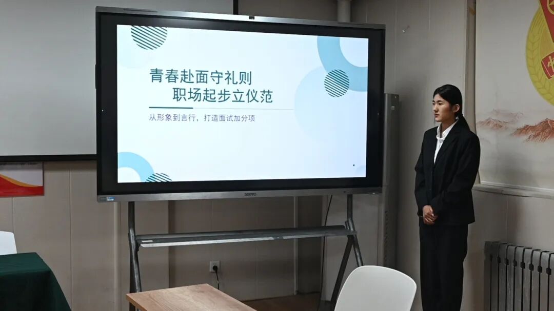 活动伊始,主讲人王梓宇从形象到言行方面,结合面试场景案例与礼仪规范视频,清晰拆解了面试形象塑造和全流程礼仪逻辑。
