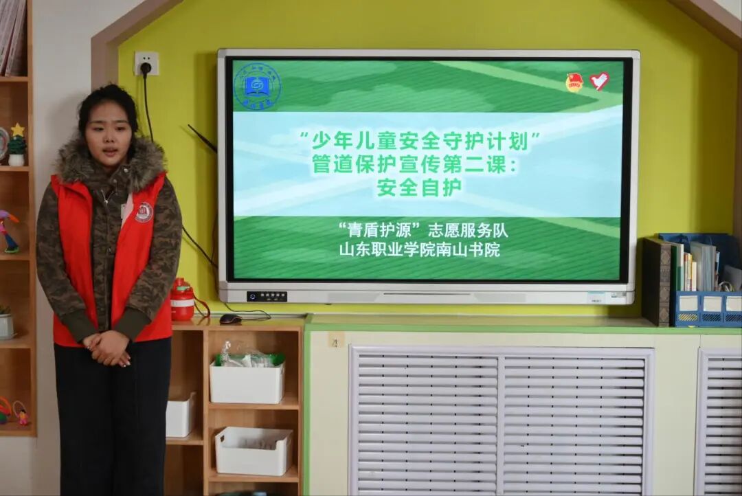 为积极响应国家“少年儿童安全守护计划”,进一步提升少年儿童的安全防范意识与应急自救能力,12月18日,山东职业学院南山书院“青盾护源”志愿服务队走进东汇景苑幼儿园,开展以“生命最可贵,平安第一位”为主题的志愿服务活动。