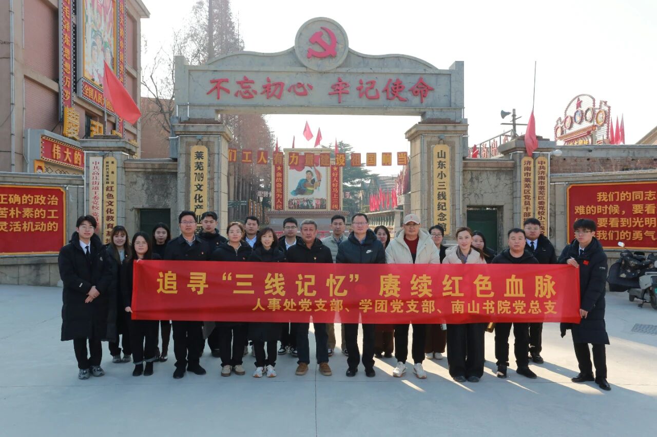 为深入学习贯彻习近平新时代中国特色社会主义思想,弘扬新时代的三线精神,加强党性修养与理想信念教育,12月4日,人事处党支部、学团党支部、南山书院党总支师生30余人前往济南市莱芜小三线纪念馆开展“追寻‘三线记忆’赓续红色血脉”主题党日活动,在历史回望中感悟精神力量,在初心传承中凝聚奋进动能。