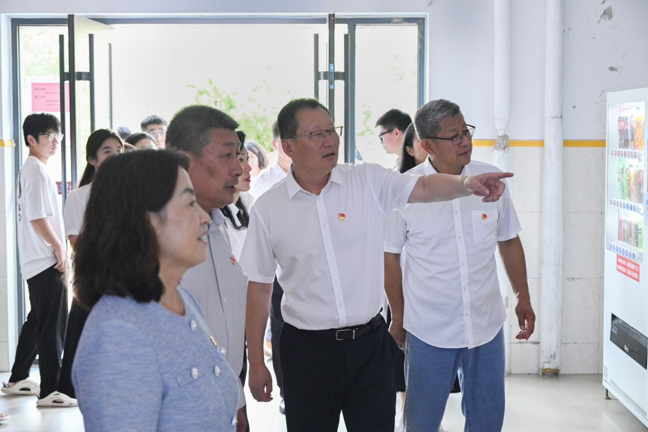 主题党日开展前,全体党员在9号楼、10号楼公寓大厅参观了书香南山文化节艺术展展览,对师生作品中体现出的敬业爱校情结给予高度赞扬。参观结束后,赵凤文、郭培谦走进学生宿舍,与学生面对面交流,了解其学习和生活情况,对南山书院公寓楼内整洁有序的环境给予充分肯定。