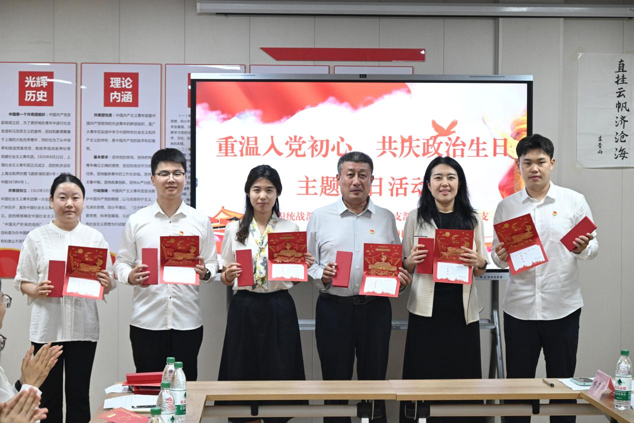 各党支部书记分别为支部党员送上贺卡,贺卡上庄重记录着党员的入党时间,印有鲜红的“入党誓词”和来自党组织饱含深情的殷切祝福,以此勉励全体党员时刻铭记初心使命,在工作中积极发挥先锋模范作用。