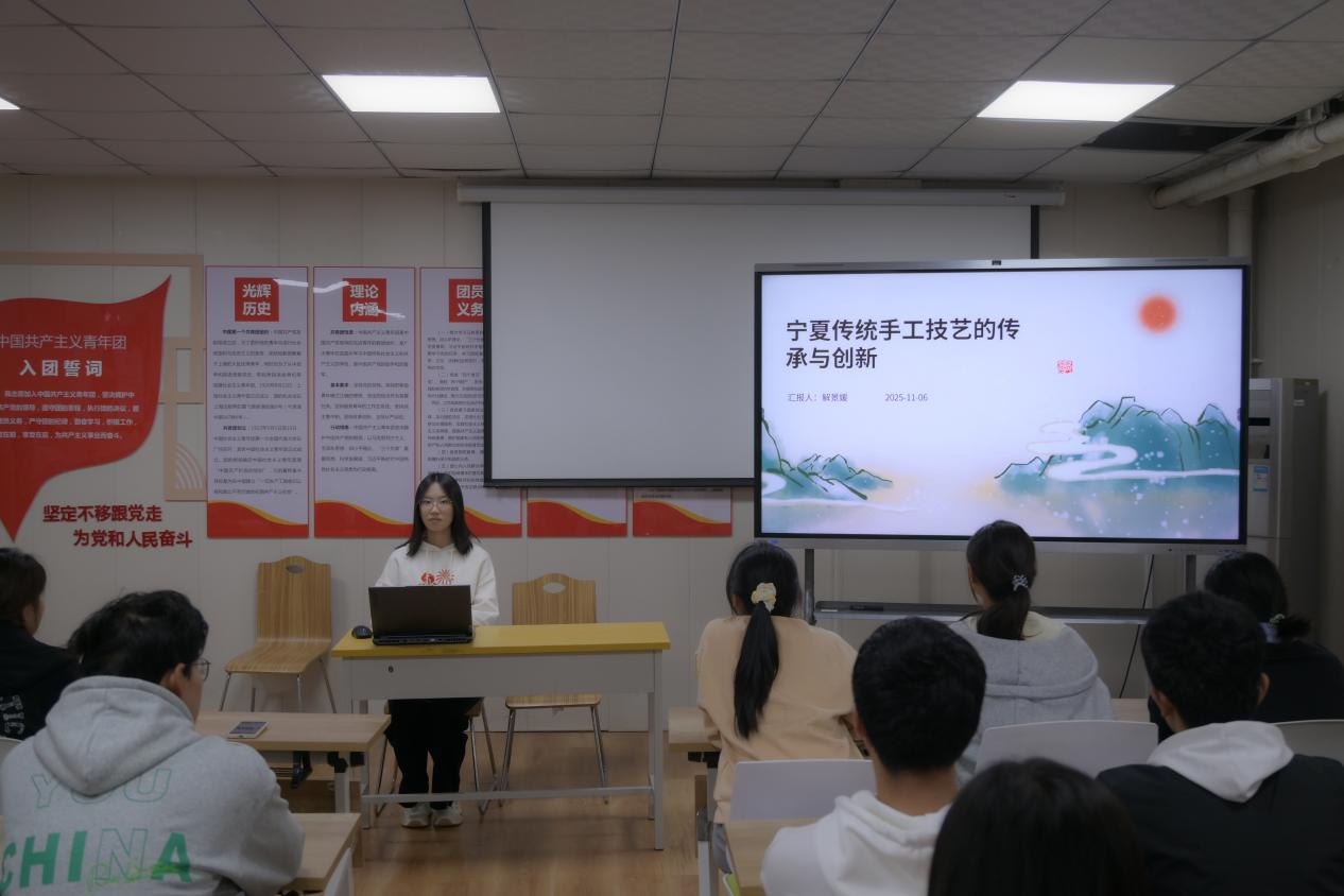为传承中华优秀传统文化,弘扬非遗之光,坚定青年文化自信,11月6日,南山书院于10号楼党团活动室开展“茶话非遗”主题分享会。本次活动以宁夏非遗文化为主题,带领同学们共同走进“非遗宁夏”的魅力世界,感受千年文化的韵味。