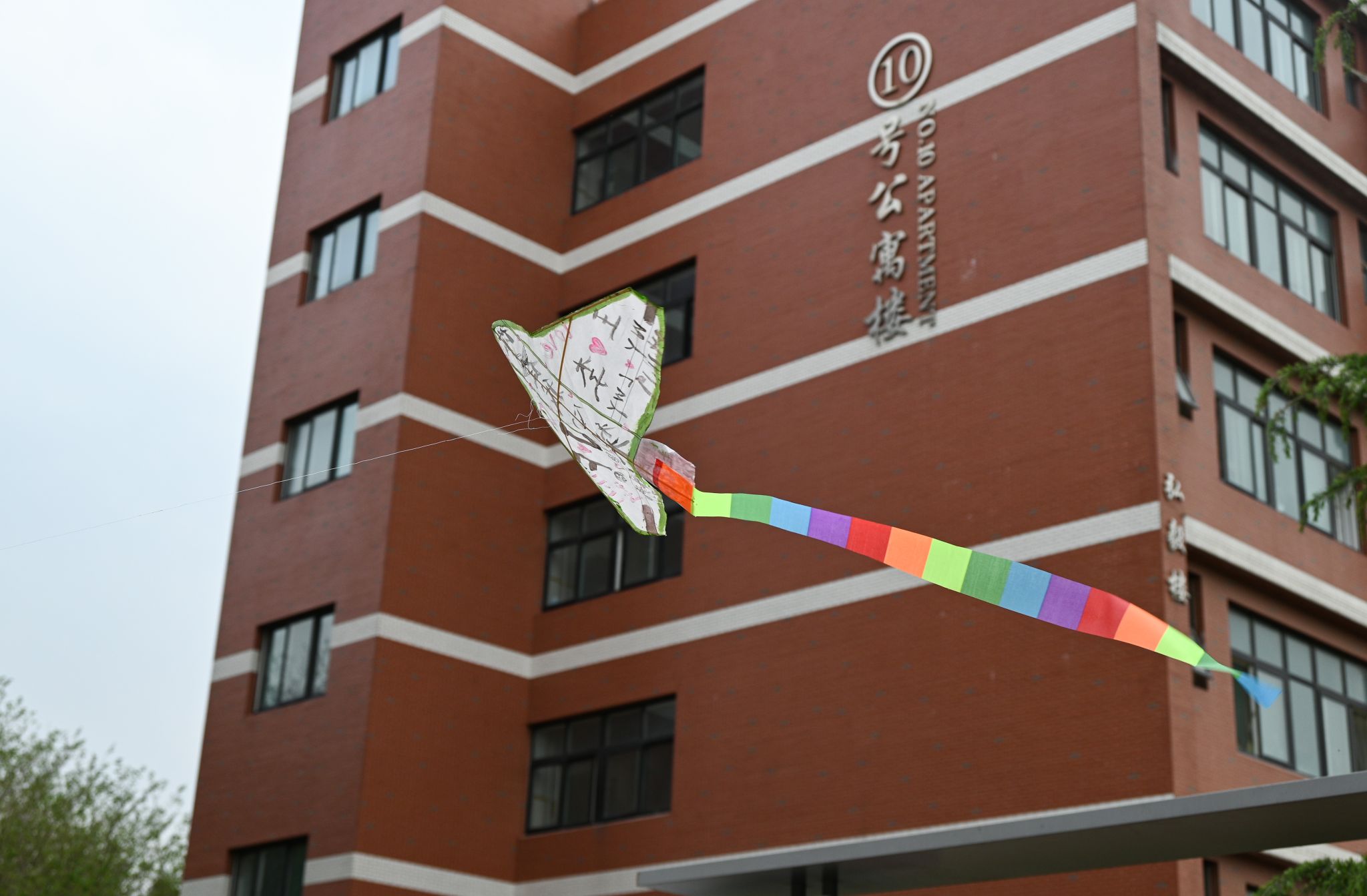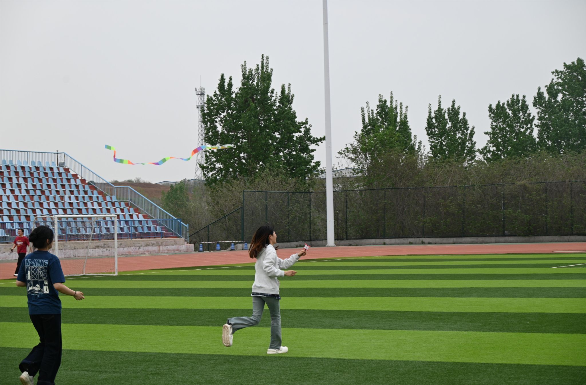 风筝制作完毕后,同学们奔赴操场,放飞风筝,承载理想。风筝乘风而上,将青春印记播撒蓝天,丝丝欢声笑语,让春日的校园洋溢着青春与活力的气息。