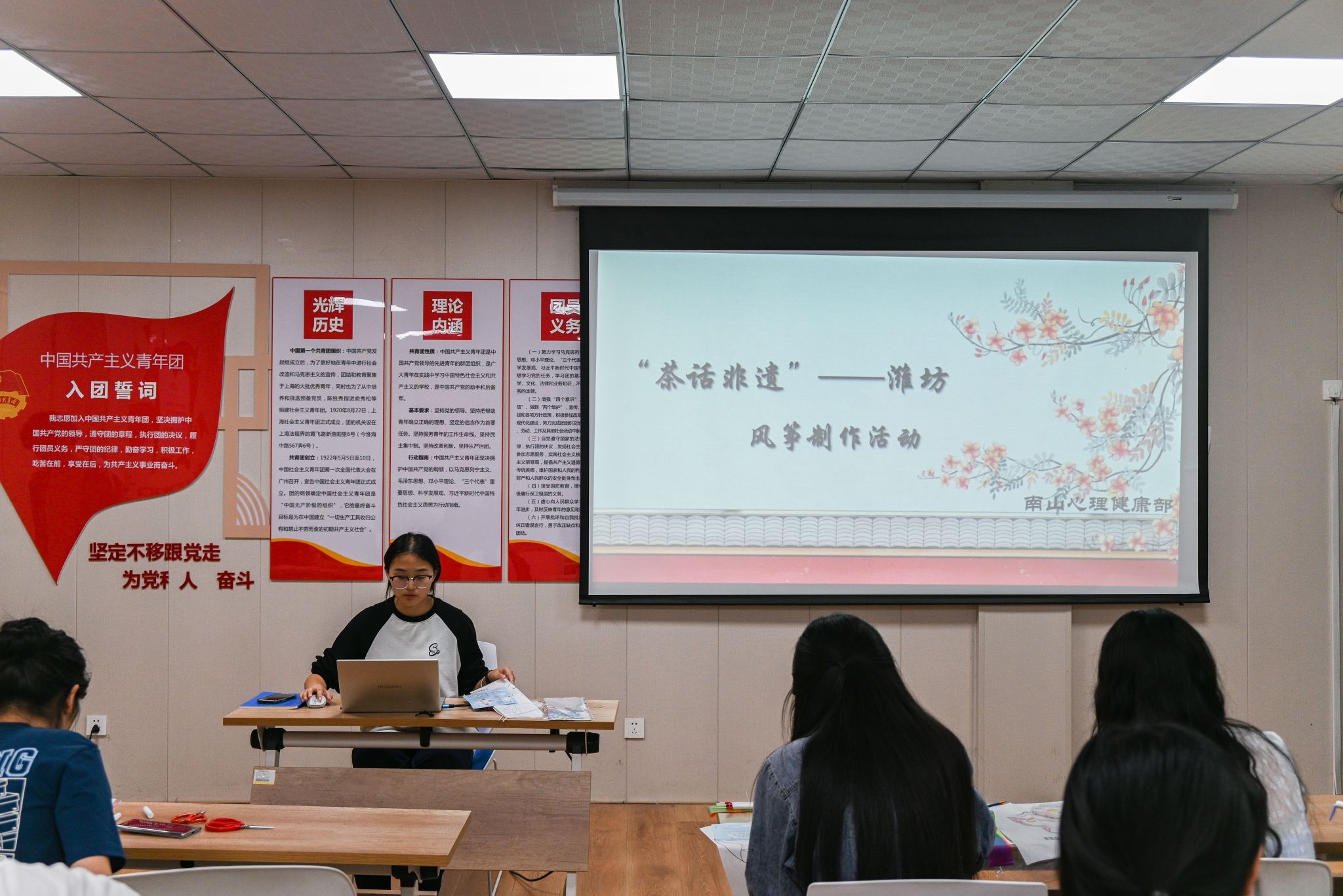 为传承中华优秀传统文化,弘扬城市非遗之光,坚定青年文化自信,4月21日,南山书院于10号楼党团活动室开展第七期 “城市非遗的活力与魅力” 交流分享会。本期交流分享会以潍坊非遗文化为主题,开启一场跨越千年的「风筝之约」。辅导员张英莉与青年学子共同参与活动,从民间风俗、传统技艺、风筝制作等维度沉浸式感受非遗 “瑰宝”。