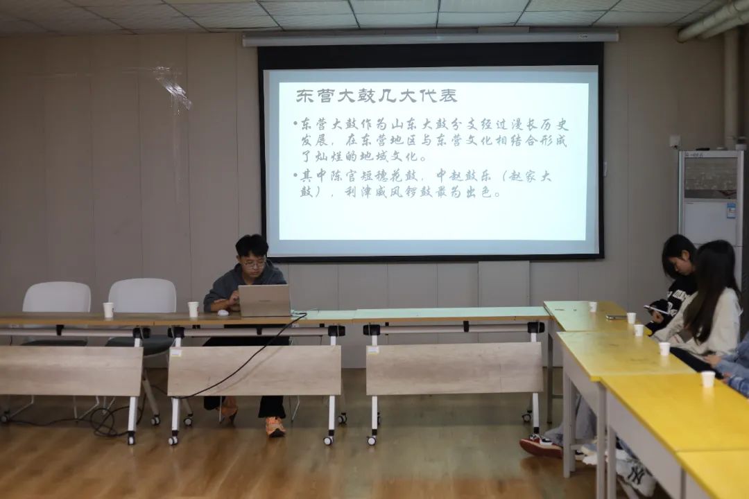 24502书社祝嗣昌向大家讲解东营大鼓的起源与发展,并带领同学们欣赏了东营大鼓的表演,领略东营独特的传统乐器经典之美。