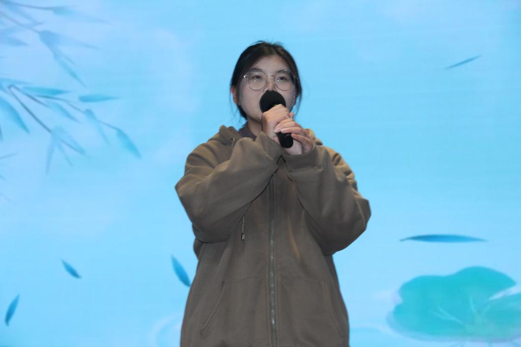 本次比赛分为歌曲独唱、两两组队PK、师生互动三个环节,在开场舞《yes,ok》的热烈氛围中拉开帷幕。在独唱环节,十位选手各展风采,有的歌舞高昂催人奋进,有的情感细腻打动人心,其中耿海鹏用自己低沉又浑厚的嗓音将《流浪记》演唱淋漓尽致,令在场观众感受到了意志坚强的少年气息,赢得阵阵喝彩;郑舒方演绎了经典歌曲《荷塘月色》,音色温柔甜美,台下观众默契地一起打着节拍,感受到浓厚的中国风韵。