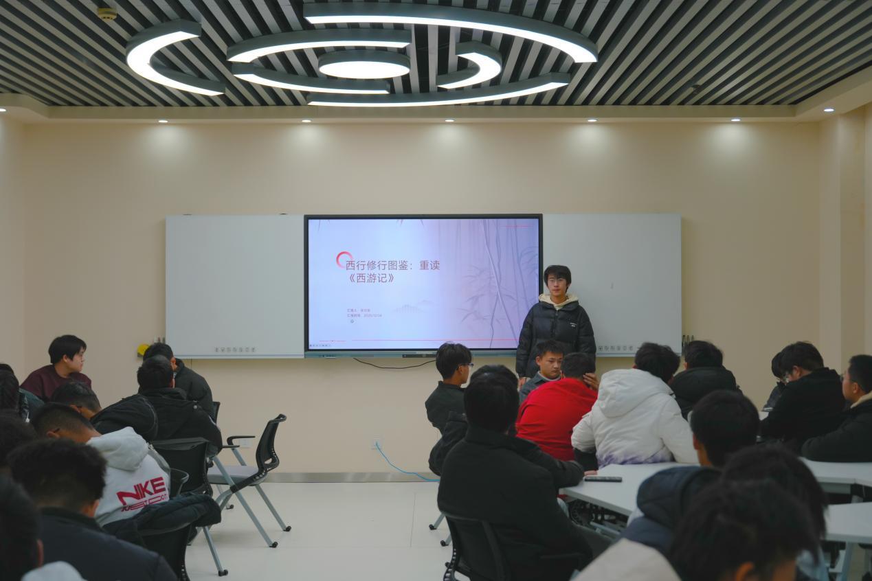 交流会上,三位同学立足经典著作,结合个人思考进行了分享。侯帅良通过《西游记》中孙悟空从叛逆到成熟的成长轨迹,剖析了个体在规则与自由之间的平衡之道,强调了责任与担当对人格塑造的重要意义;丁毅飞以《毛泽东选集》中实践论的精髓为核心,阐释了从实践到认识、再回归实践的辩证循环,引导同学们以科学方法论指导现实问题的解决;任金旭围绕《水浒传》中“义”与“忠”的冲突,以宋江的人生选择为镜,揭示了传统伦理在时代洪流中的困境与抉择,启发对理想与现实关系的深层反思。
