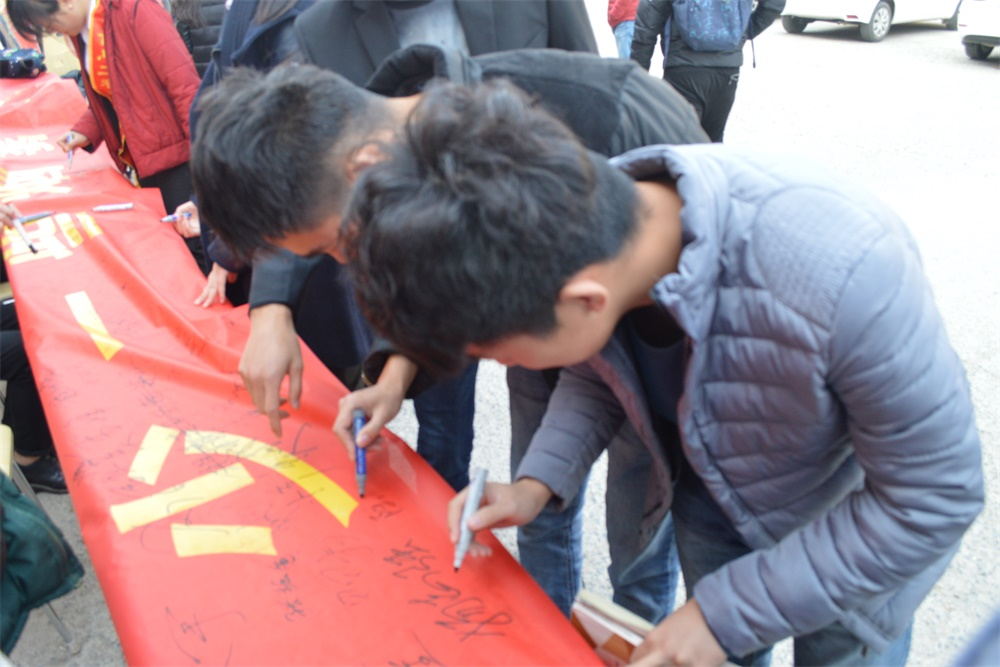 为积极响应学院号召,创建无烟校园,12月8日,铁道信号与信息工程系青年志愿者协会举办了“禁烟行动,师生同行”主题签名活动。活动中,同学们纷纷在禁烟标语横幅上签名承诺:禁烟从我做起。通过活动,进一步呼吁师生关爱生命健康,远离烟草,创建无烟校园。