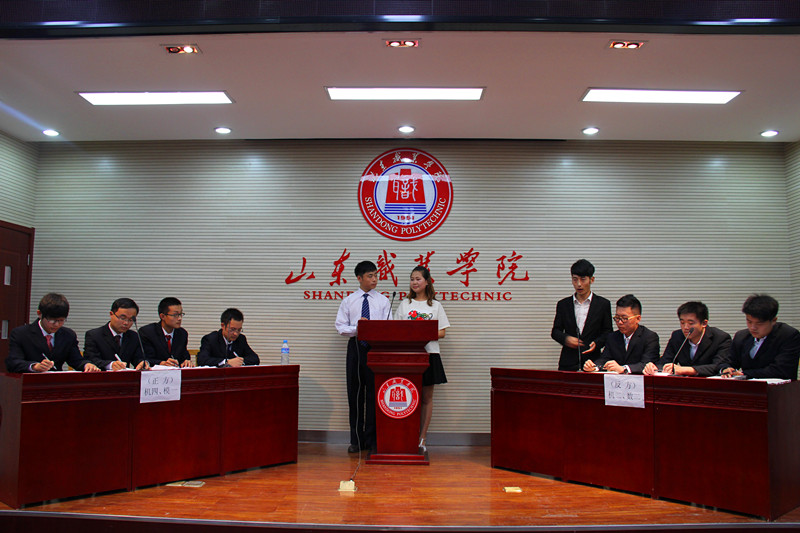 本场辩论赛的辩题是在校大学生塑造人格与积累知识哪个更重要。双方代表队结合社会生活、实际案例和自己在学院内的学习生活对自己的观点进行了阐述和激烈的辩论,十分钟激烈的自由辩论成为了本场辩论赛的亮点。赛后,杨主任上台发表了简短的讲话,杨主任首先对参加本次比赛的两支代表队的表现进行了肯定,并希望激烈的比赛不要影响大家赛外的友谊。而且杨主任对台下观众提出了要求,并告诉大家“所谓的成功就是不断超越昨天的你”。最后,经过激烈的辩论,反方代表队获得了本场比赛的胜利。