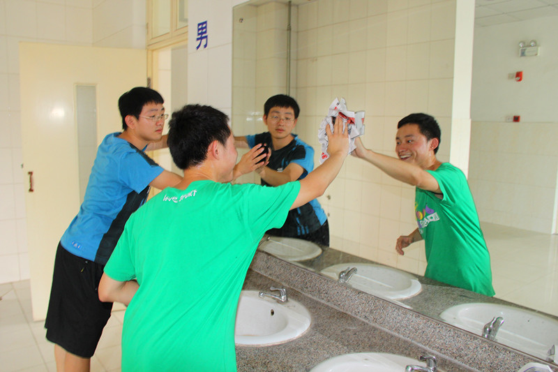 本次活动中,为了提高工作效率,同学们进行了简单的分工,利用废旧报纸等工具对厕所门前的镜子、水龙头等进行了彻底的清扫。而且同学们没有因为厕所的脏乱而抱怨,认真仔细的完成了所有的清扫任务。清扫任务结束后,杨主任对今天的清扫活动表示了满意,并与大家进行了合影留念。