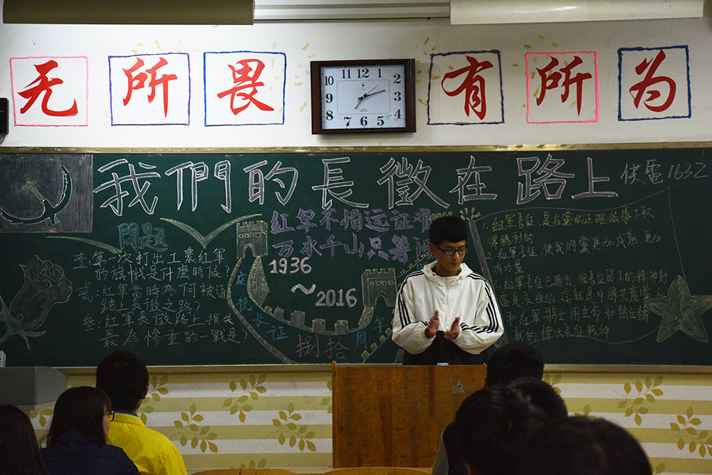 长征是一座精神丰碑,是在血与火和生与死中体现的顽强意志,是不畏艰难险阻的勇气。为进一步弘扬长征精神,10月23日,铁道供电与电气工程系开展了“走好今天长征路”主题班会。班会上,同学们积极发言。班长曲志卓表示,长征是人类历史上的伟大奇迹,长征精神是一剂催人奋进的催化剂,永远激励着我们。学生张国鑫表示,长征是我们的历史,更是我们的财富。我们要继承并发扬长征精神,在学习工作中不畏艰难,顽强拼搏,永远奋进。