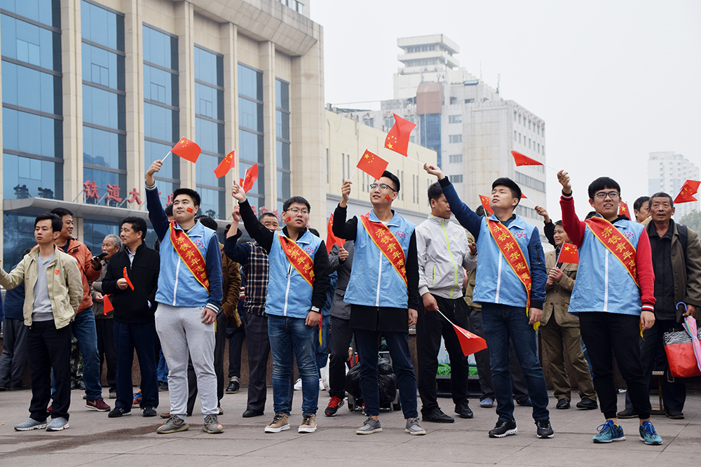 10月18日,中国共产党第十九次全国代表大会在北京开幕。济南火车站在广场大屏直播十九大开幕盛况,电视直播吸引了近千名旅客驻足观看。铁道供电与电气工程系红蓝青青年志愿者协会志愿者在现场与游客及附近的居民共同观看了十九大开幕盛况。