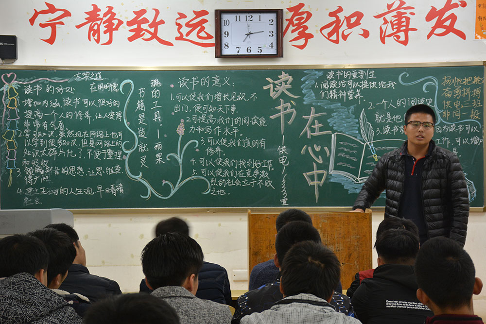 为培养学生读书兴趣,营造班级良好学习氛围,11月13日,铁道供电与电气工程系组织各班开展了“读经典,话传承”主题班会。班会上,各班诵读经典书籍,畅谈个人感想。供电1633班还辅以设计黑板报、开设读书专刊等丰富活动内容。该班同学胡雅楠表示,阅读清新隽永的书籍,生活会多几分温馨和感动。今后我们会多读书、读好书,传承中华经典,品味书香魅力,提高个人素养。