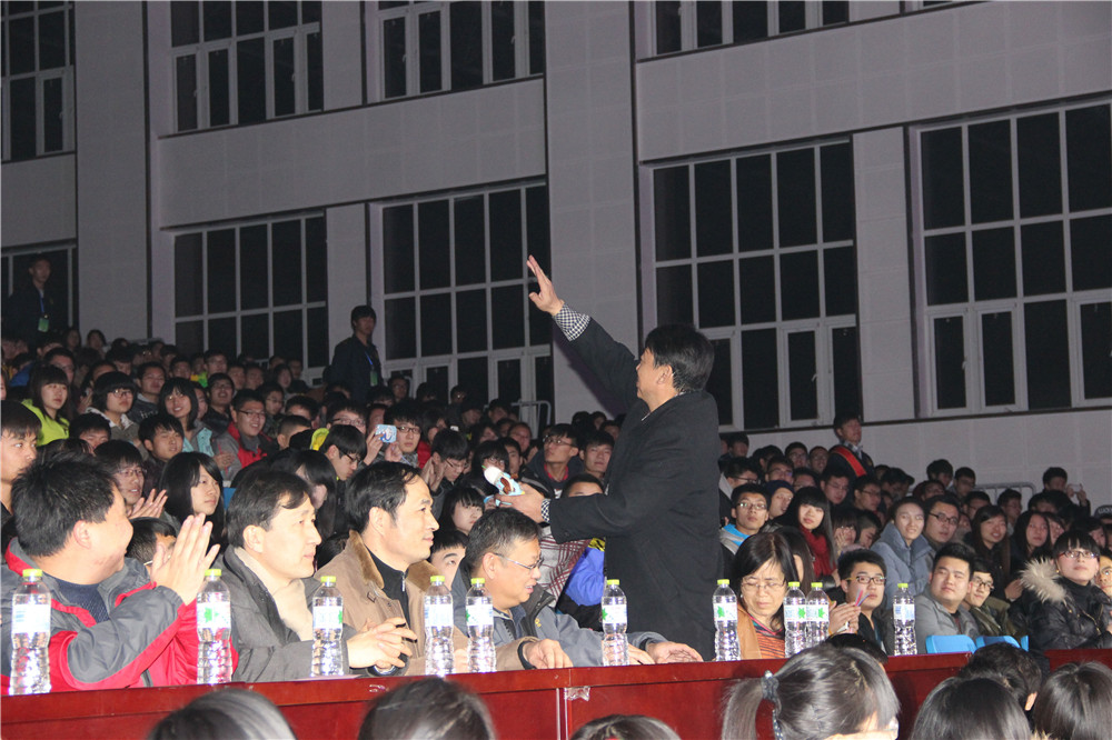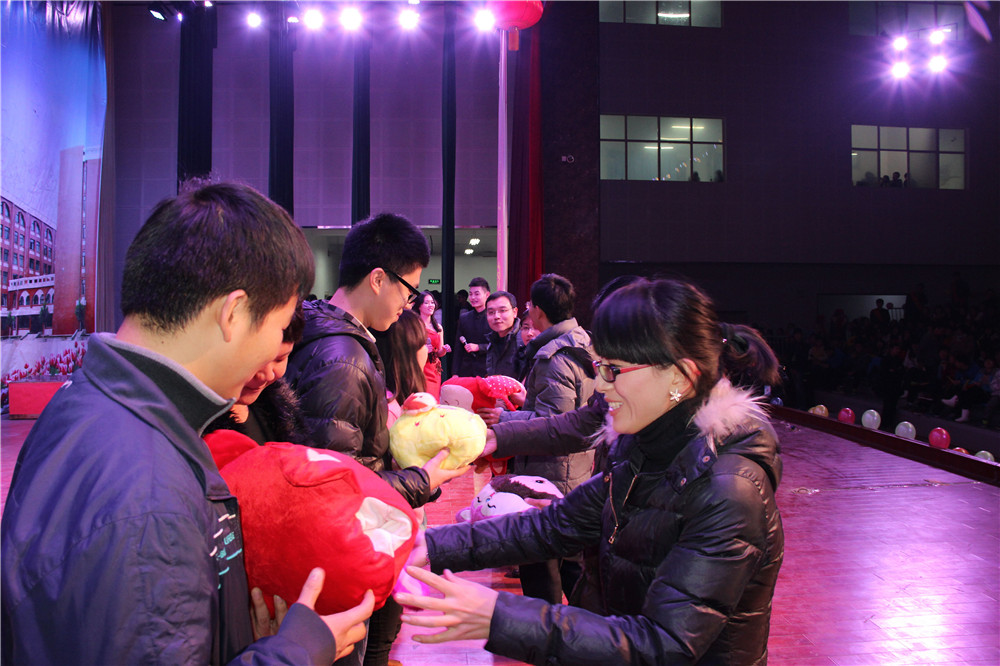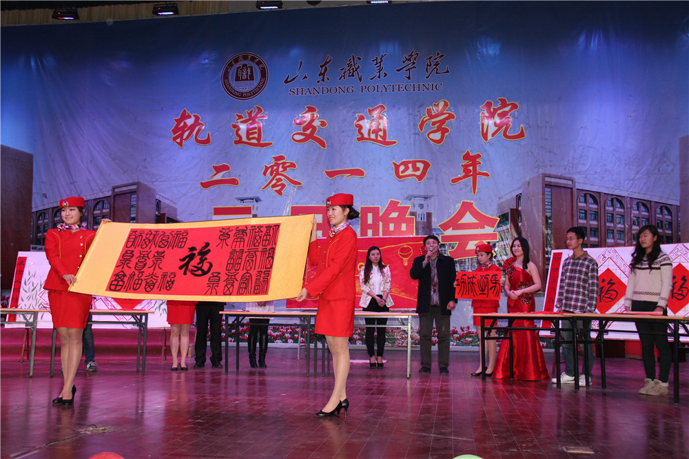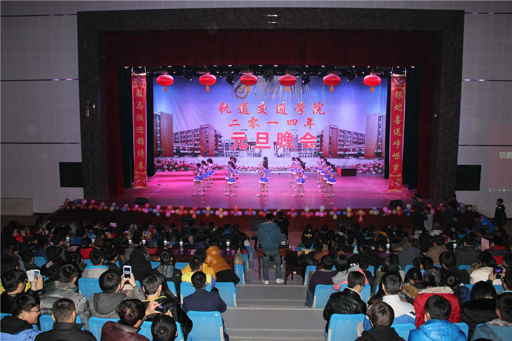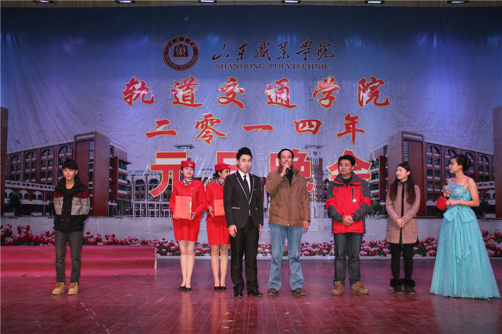 银蛇喜送峥嵘岁,骏马欢迎锦绣春。12月23日晚,南益馆华光溢彩、热闹非凡,由轨道交通学院主办的2014年元旦晚会在此隆重举行。山东职业学院学生处副处长周垂玉,学院团委办公室主任齐涛,轨道交通学院常务副院长吴书锋,党总支书记郭亭,副院长王绍军、柳美燕等领导老师莅临晚会现场,与千名同学一同观看了本次晚会。