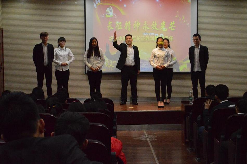 为宣传弘扬伟大长征精神,11月16日,铁道运输与财经管理系举办了主题为“红色革命,励志人生”的纪念中国工农红军长征胜利80周年诗文诵读比赛。系学生党支部书记栾金志、代理团总支书记张蕾出席活动。