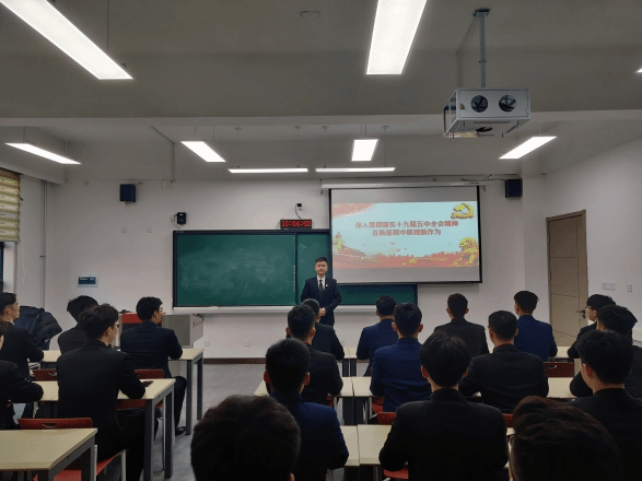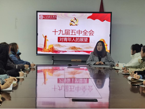 根据团省委工作部署要求,12月29日,我校共青团举行学习党的十九届五中全会精神宣讲报告会。校团委副书记宋高妮与我校学生干部代表于图书馆会议室分享了学习十九届五中全会精神的心得体会,各书院通过直播的形式学习了此次宣讲报告会。