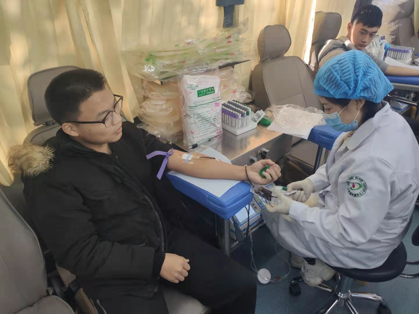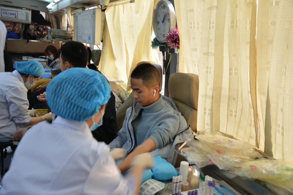 用爱心温暖校园,以真情奉献社会。12月5日上午,学校国旗护卫队组织开展队内献血。彰显退伍军人军魂精神,他们无时无刻不冲在最前线。献血车上,一个个退伍大学生毫无畏惧,引领模范作用,满腔热血铸军魂,无偿献血暖人心。