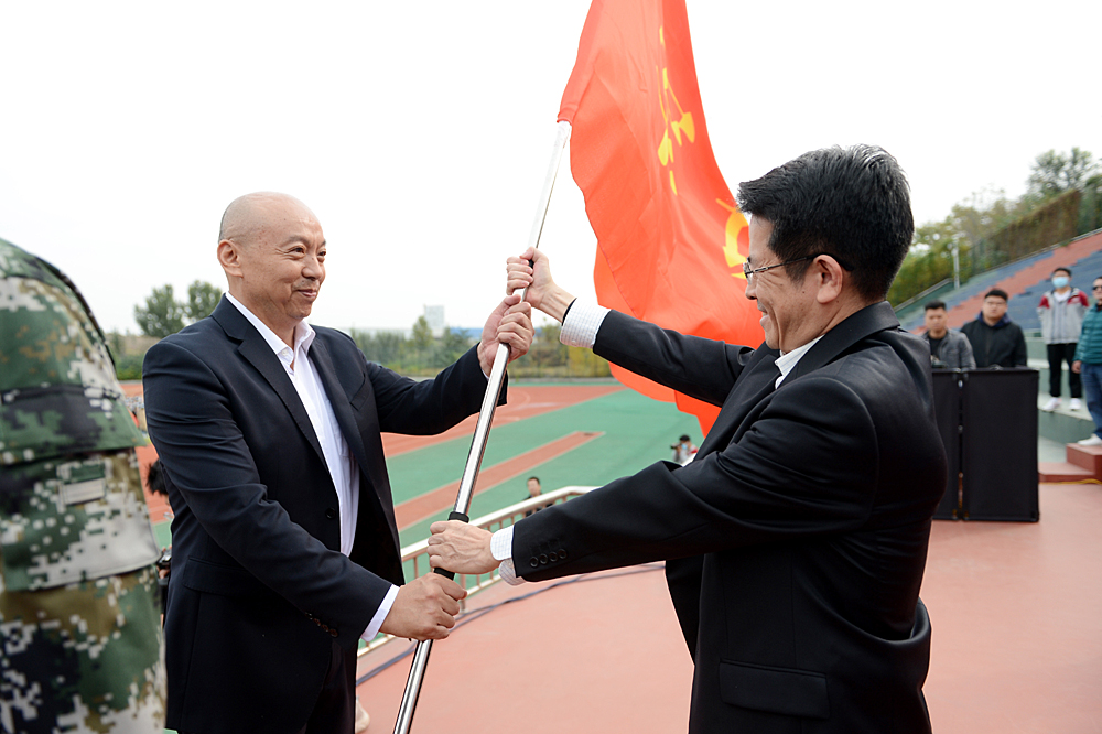 伴随着院长秦河向军训团授予的红旗迎风飘扬,2020级新生的大学军训生活正式开启。接下来同学们将接受为期7天的军事理论教学和军事技能训练。