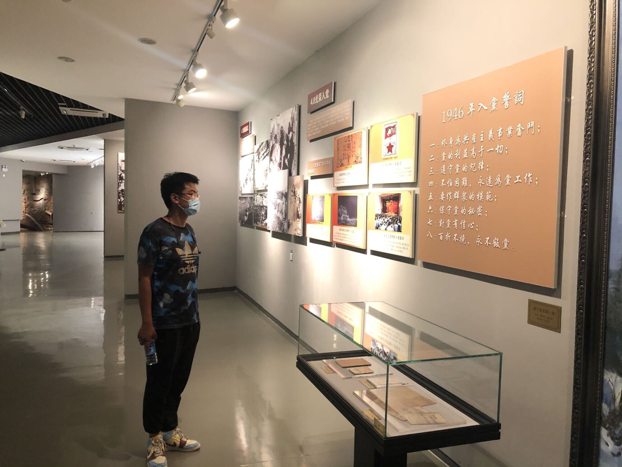 为缅怀革命先辈,追寻先辈足迹,传承红色基因,7月29日,山东职业学院“以梦为舟,扬帆远航”暑期社会实践团的团队成员分别来到杨子荣纪念馆、章丘烈士陵园等红色基地,通过参观学习、献花致敬,团队成员们不禁感叹革命先烈为争取民族解放而抛头颅洒热血的英勇壮举,同时也激励着他们不忘初心,砥砺前行,为创造更加幸福美满的美好生活而努力奋斗。图为实践队员观看杨子荣智擒座山雕的塑像。中国青年网通讯员 孟英杰 摄图为实践队员参观学习杨子荣光荣入党的事件记载及1946年入党誓词。中国青年网通讯员 孟英杰 摄图为实践队员参观展柜内杨子荣曾穿过的军大衣、戴过的帽子和使用过的手枪等。中国青年网通讯员 孟英杰 摄图为实践队员参观结束后,面向团旗重温入团誓词。中国青年网通讯员 孟英杰 摄图为实践成员来到章丘烈士陵园,瞻仰烈士纪念碑文。中国青年网通讯员 殷杰 摄图为实践成员李守信向盛习友烈士默哀致敬。中国青年网通讯员 孟英杰 提供图为实践成员李守信向盛习友烈士纪念碑献花致敬。中国青年网通讯员 孟英杰 提供图为实践成员参观完杨子荣纪念馆后的合影。中国青年网通讯员 孟英杰 摄