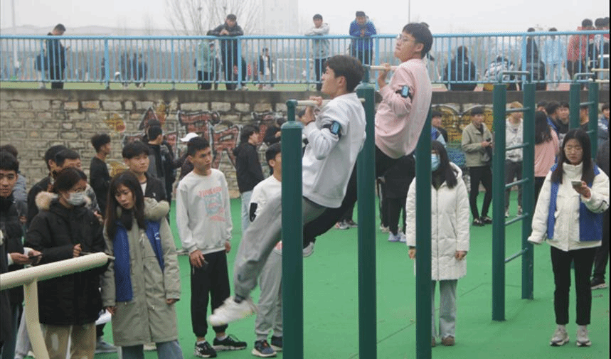 “天行健,君子以自强不息”。11月21日,2021级同学登上了体测运动会的赛场。当天的赛场上荷尔蒙在涌动,青春的气息在赛场每个角落飘荡。在“男子引体向上”项目上,他们向着更高、更快的目标前进;“立定跳远”项目中,他们宛若脱兔,青春的跳跃,预示着他们崭新的人生要从山职启航。