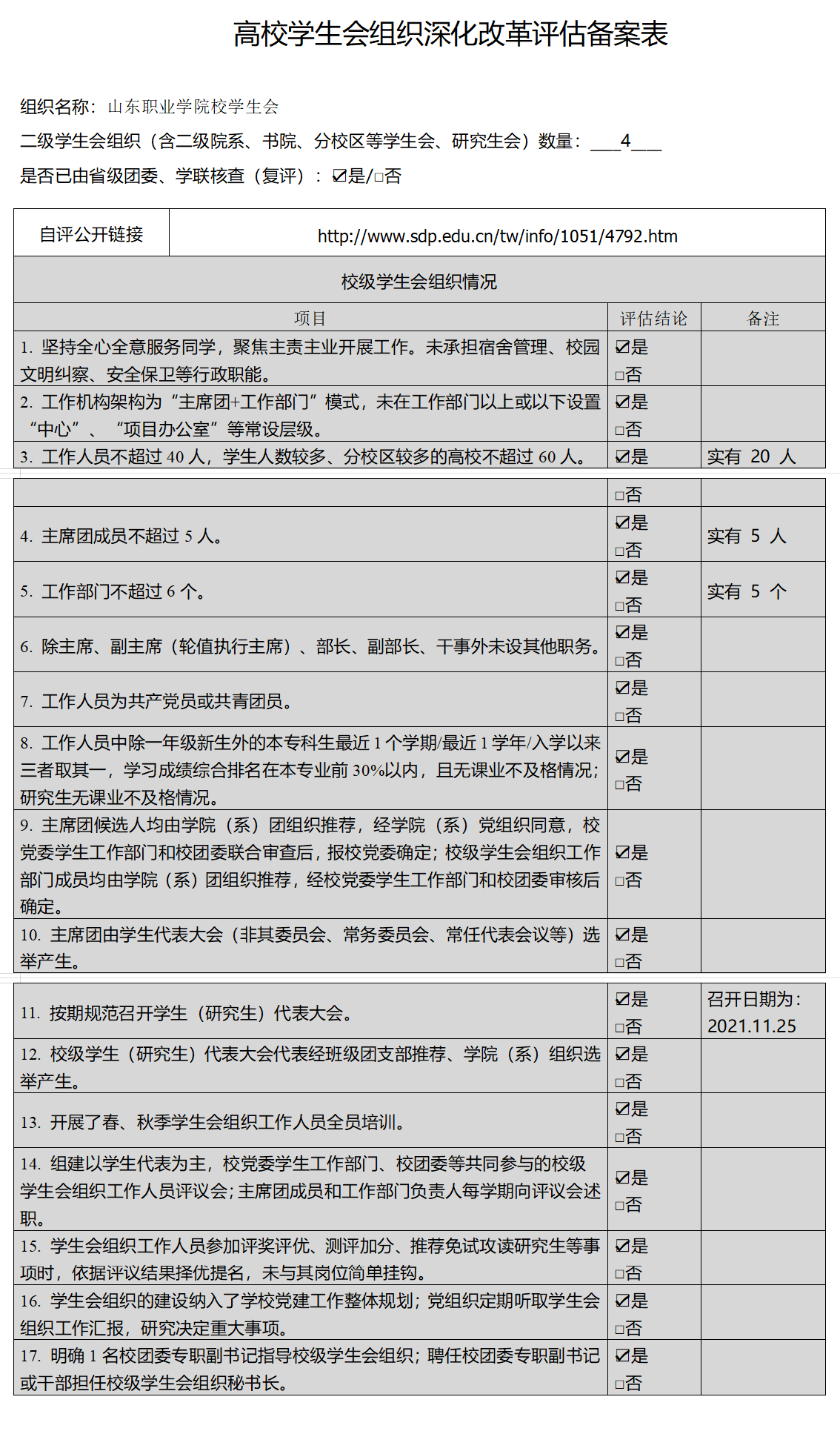 学校党委落实学生会改革实施方案,并出台山职党字[2017]44号《进一步加强和改进学院共青团工作的实施意见》号文。并将学生会组织建设纳入2022年党建工作整体规划。