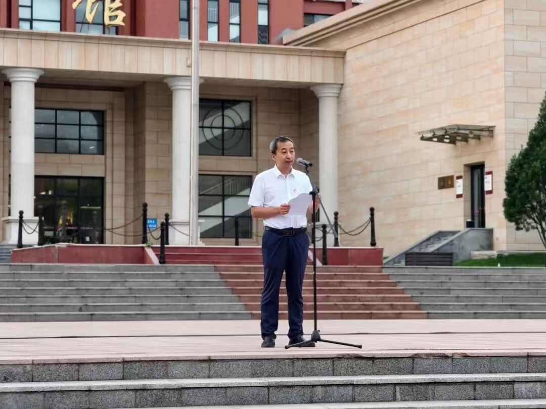 仪式上,党委副书记郭鹏致辞,他回顾了中国人民抗日战争的壮阔历程,强调了其具有的重大历史意义和深远影响,同时结合新学期“铭记与奋斗”的开学第一课主题,号召学生干部们从历史中汲取奋进力量,以实际行动传承抗战精神。