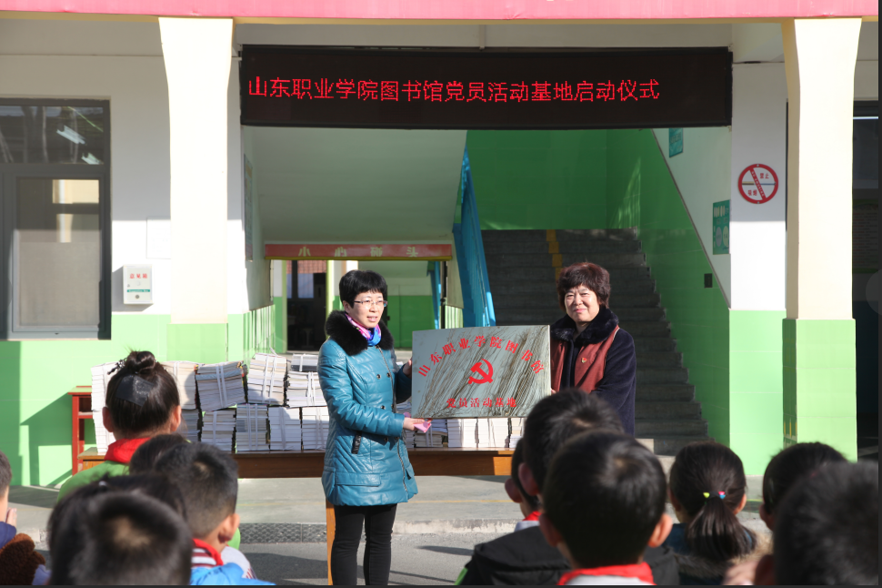 随后,祝院长和庄科小学贾校长共同为图书馆党员活动基地揭牌,标志着山东职业学院图书馆党员活动基地正式成立。