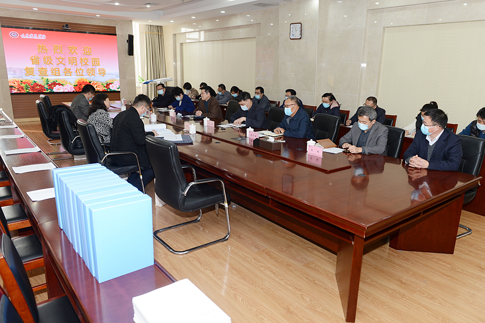 汇报会上,秦河对复查组到校检查指导文明校园建设表示欢迎,并对2020年度省级文明校园建设情况进行了汇报。秦河指出,在习近平新时代中国特色社会主义思想指引下,学校党委高度重视文明校园建设工作,紧紧围绕立德树人根本任务,扎实开展各种创建活动。全校上下形成了人人有责、人人参与的良好氛围,思想道德建设、领导班子建设、校园文化文化建设、师德师风建设、校园环境建设、阵地建设等方面成果丰硕。下一步学校将以此次省级文明校园复查工作为契机,持之以恒抓好精神文明建设工作,为推动学校内涵发展、特色发展、高质量发展提供坚强的思想保证。