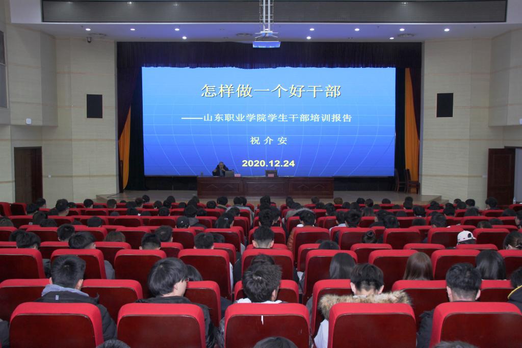 为提升学生干部工作能力,增强学生干部的服务意识。12月24日,我校在图书行政楼西报告厅举行学生干部培训会。学校纪委书记祝介安以“怎样做一名好干部”为题做了辅导报告。培训会由学团党总支书记郭亭主持。