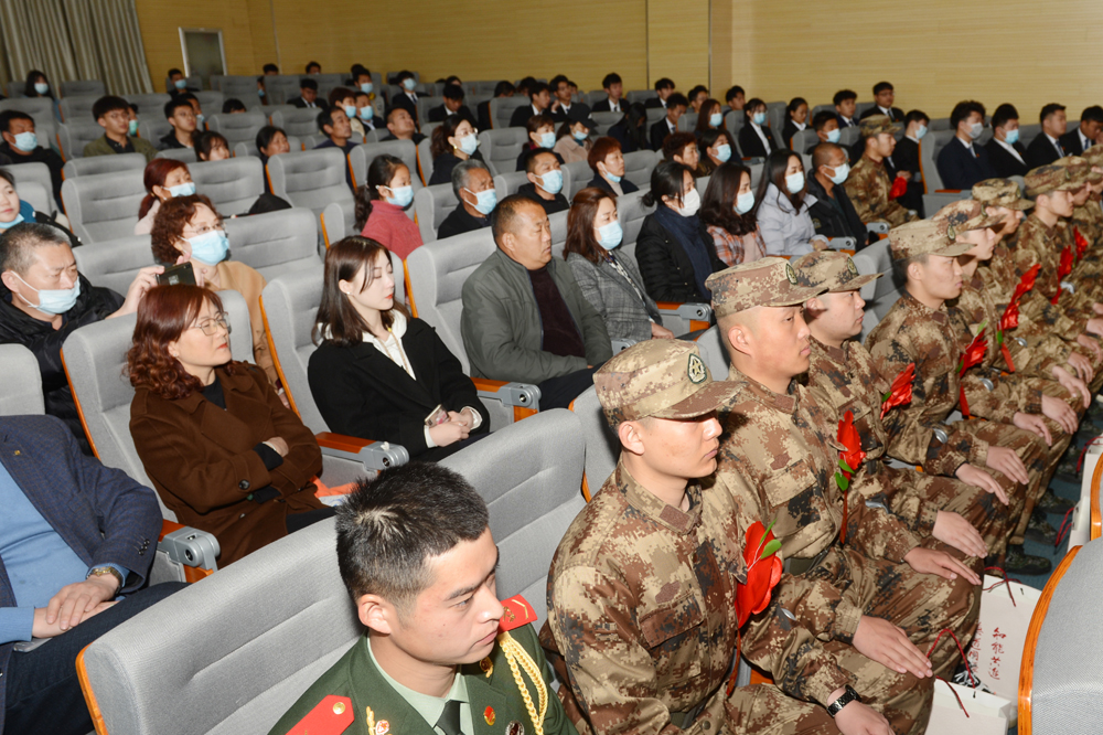 退伍学生靳啟水代表退伍老兵分享了自己从军的收获,对新入伍学生提出了几点建议。新入伍学生贾东千代表20名新入伍学生发言,感谢父母的养育、学校的培养、老师的教育,表达了建功军营、献身国防的坚定决心。