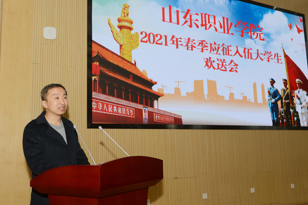 3月14日上午,我校在图书行政楼东报告厅举行2021年春季应征入伍大学生欢送会。副院长郭鹏出席并讲话。