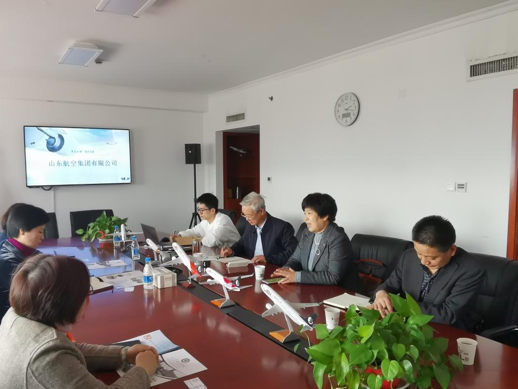 3月23日,副院长祝瑞花率机场学院筹建办一行赴山东航空集团公司调研。中国电子劳动学会校企合作促进会副会长王世忠、副秘书长王济胜,山东航空集团公司党群工作部党校教务处主任司海燕、山东航空股份有限公司人力资源部培训发展经理刘奕雯、山东太古飞机工程有限公司培训中心培训经理孙颖参加座谈。