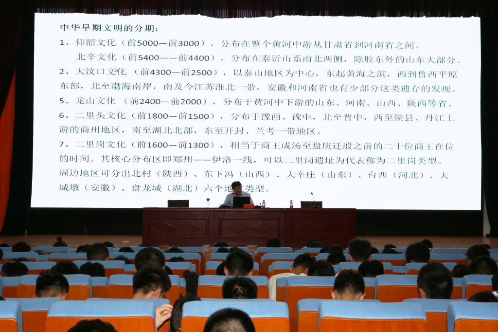 5月26日下午,我校人文大讲堂第一期在西报告厅隆重开讲。山东师范大学吕文明教授应邀做专题讲座。院长秦河出席并为吕文明教授颁发客座教授聘书。讲座由人文与基础课教学部主任赵龙主持。人文与基础课教学部教师代表,各书院辅导员及学生代表参加了讲座。