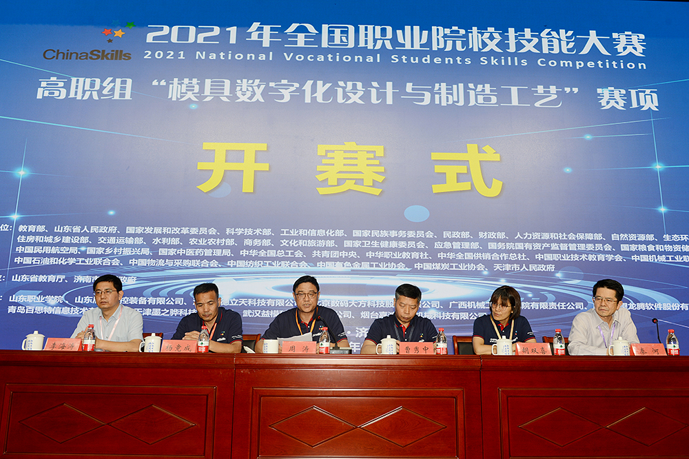 6月15日,2021年全国职业院校技能大赛高职组“模具数字化设计与制造工艺”赛项开赛式在我校图书行政楼西报告厅举行。赛项执委会副主任周涛教授、监督仲裁长胡双喜教授、裁判长杨竟成教授、专家组组长曹秀中教授,院长秦河出席开赛式。开赛式由副院长祝瑞花主持。
