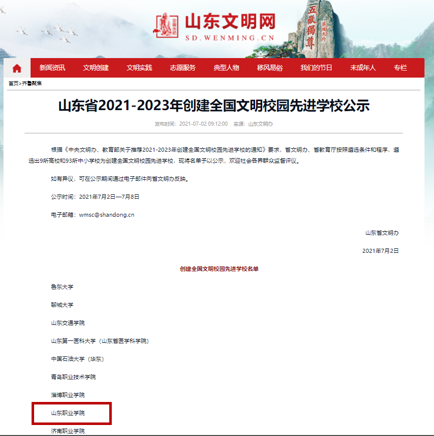 7月2日,山东省文明办公示了山东省2021-2023年创建全国文明校园先进学校名单,我校赫然在列。