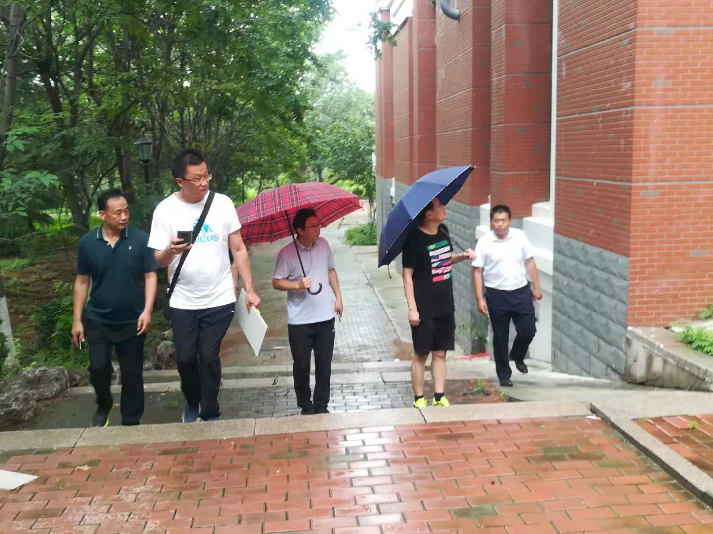 郭培谦一行先后对学校食堂、学生公寓、基建指挥部、各楼层地下室、暑期工程施工现场、校区山石裸露地等重点部位进行实地察看, 深入细致地了解防汛物资准备、防汛设施设备运行等情况,并就应急值班人员安排、险情处置措施等工作作出部署安排。