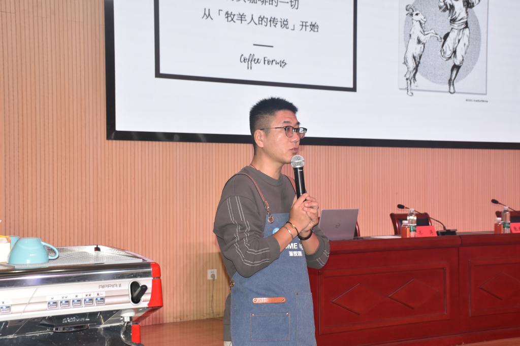 张教明是SCAE欧洲精品咖啡协会认证咖啡师,曾任澳大利亚宾达咖啡山东区技术总监、索亚技术培训学校咖啡老师。张老师图文并茂的介绍了咖啡的起源、产地、分类、加工方法,将听众带入了咖啡的神奇世界。随后逐一展示了来自不同产区的咖啡豆和各类器具,并进行了经典咖啡和手冲咖啡的现场制作演示和品鉴。