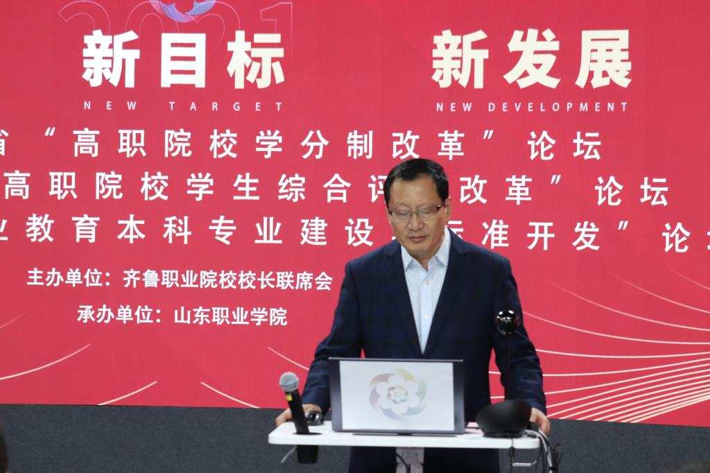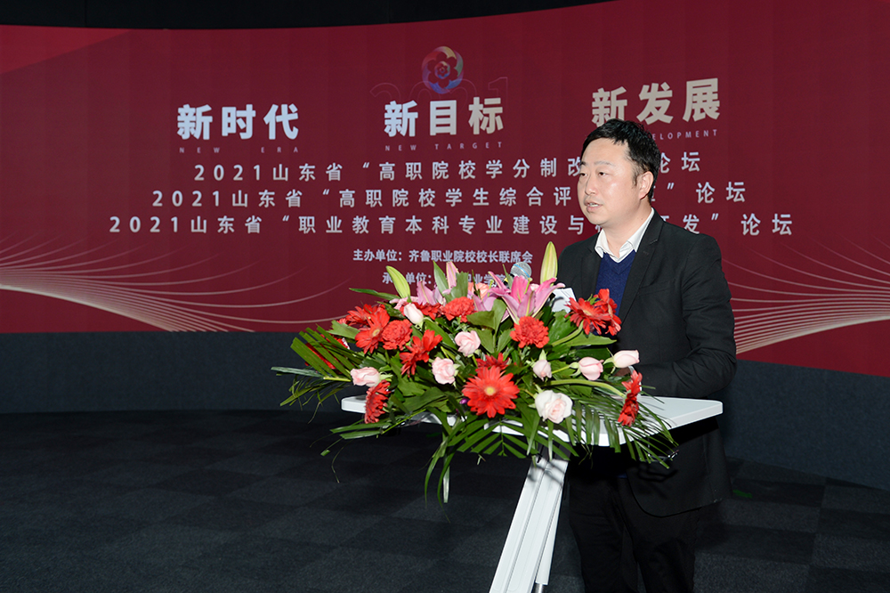 高职院校学生综合评价改革论坛围绕三全育人综合改革、大思政体系构建、学生管理体制机制建设等内容,邀请山东师范大学发展规划与学科建设处处长张茂聪、青岛大学学生工作部部长解涛等4位专家作主题报告,济南工程职业技术学院、山东商业职业技术学院、山东科技职业学院、山东职业学院、山东乙盟信息技术有限公司作典型发言及交流。