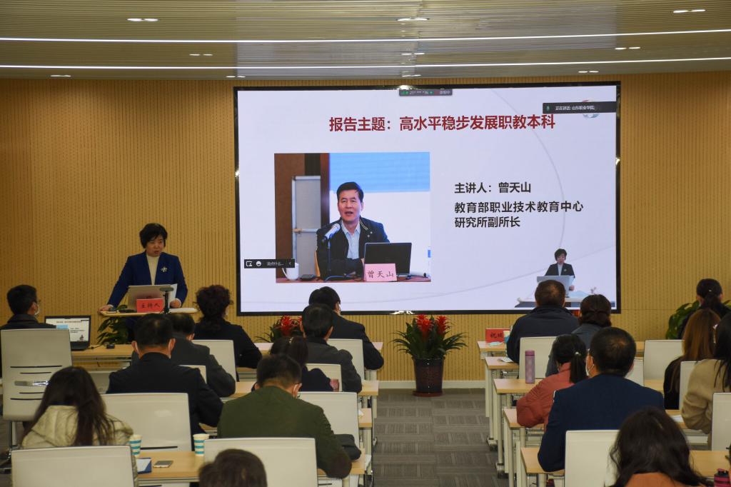 职业教育本科专业建设与标准开发论坛围绕职业本科发展路径、职业本科专业设置与人才培养方案制订、职业教育高质量发展等内容,邀请教育部职业技术教育中心研究所副所长曾天山、国家教育行政学院职业教育研究中心主任邢晖等8位专家作主题报告,参会人员进行会议交流。