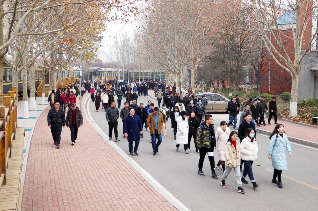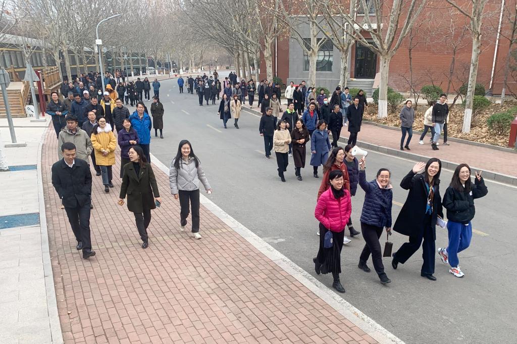 本次活动以校门口火车头为起点,绕校园一周,全程约2公里。健步走队伍浩浩荡荡,巍巍壮观。一路上,大家迈着轻快的步伐,意气风发地沿着指定路线大踏步前进。活动中,老师们结伴而行,呼吸着清新空气,欣赏着校园冬季美景,每个人脸上都洋溢着喜悦的笑容,享受着健康运动带来的快乐。