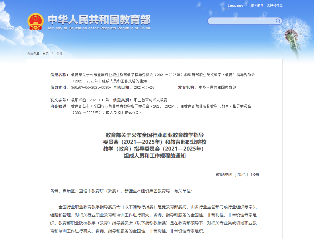 全国行业职业教育教学指导委员会(以下简称行指委)是受教育部委托,由各行业主管部门或行业组织等牵头组建和管理,对相关行业职业教育和培训工作进行研究、咨询、指导和服务的全国性、非营利性、非常设性专家组织。教育部职业院校教学(教育)指导委员会(以下简称教指委)是在教育部领导下,对相关专业类或领域职业教育和培训工作进行研究、咨询、指导和服务的全国性、非营利性、非常设性专家组织。两个委员会在职业教育深化产教融合、校企合作,聚合行业企业资源,推进教育教学改革,加强职业教育科研和队伍建设,提高人才培养质量等方面发挥着重要作用。