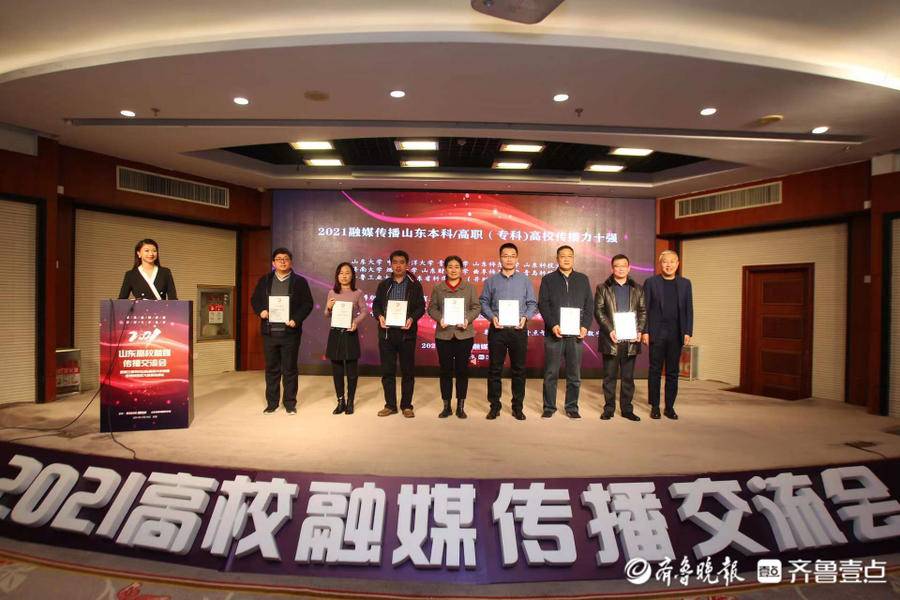 12月18日上午,齐鲁晚报·齐鲁壹点2021山东高校融媒传播交流会暨第三届“寻找山东最美大学校园”微视频/摄影大赛颁奖典礼举行。我校荣获“2021融媒传播-山东高职(专科)院校传播力十强”和“2021融媒传播-优秀引导力高校”两项大奖。