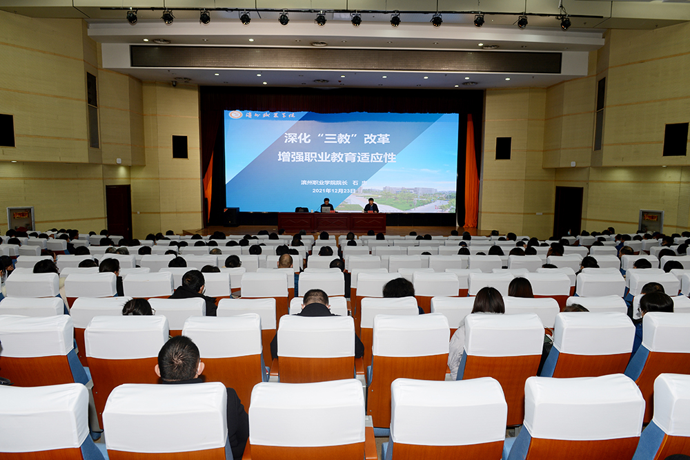 为进一步深化职业教育改革,优化办学要素,提升教师教学能力,12月23日,我校邀请滨州职业学院院长石忠来校作专题报告,报告会由党委书记高磊主持。