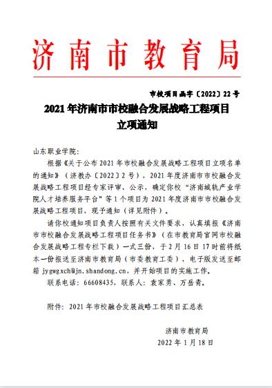 济南市市校融合发展战略工程项目是深入贯彻落实济南市人民政府关于贯彻落实强省会战略的重要举措。学校将依托市校融合发展战略工程项目,深化市校融合发展,助力科创济南、智造济南、文化济南、生态济南、康养济南“五个济南”建设,推动学校和区域经济高质量发展,不断提升服务新时代现代化强省能力和贡献度。
